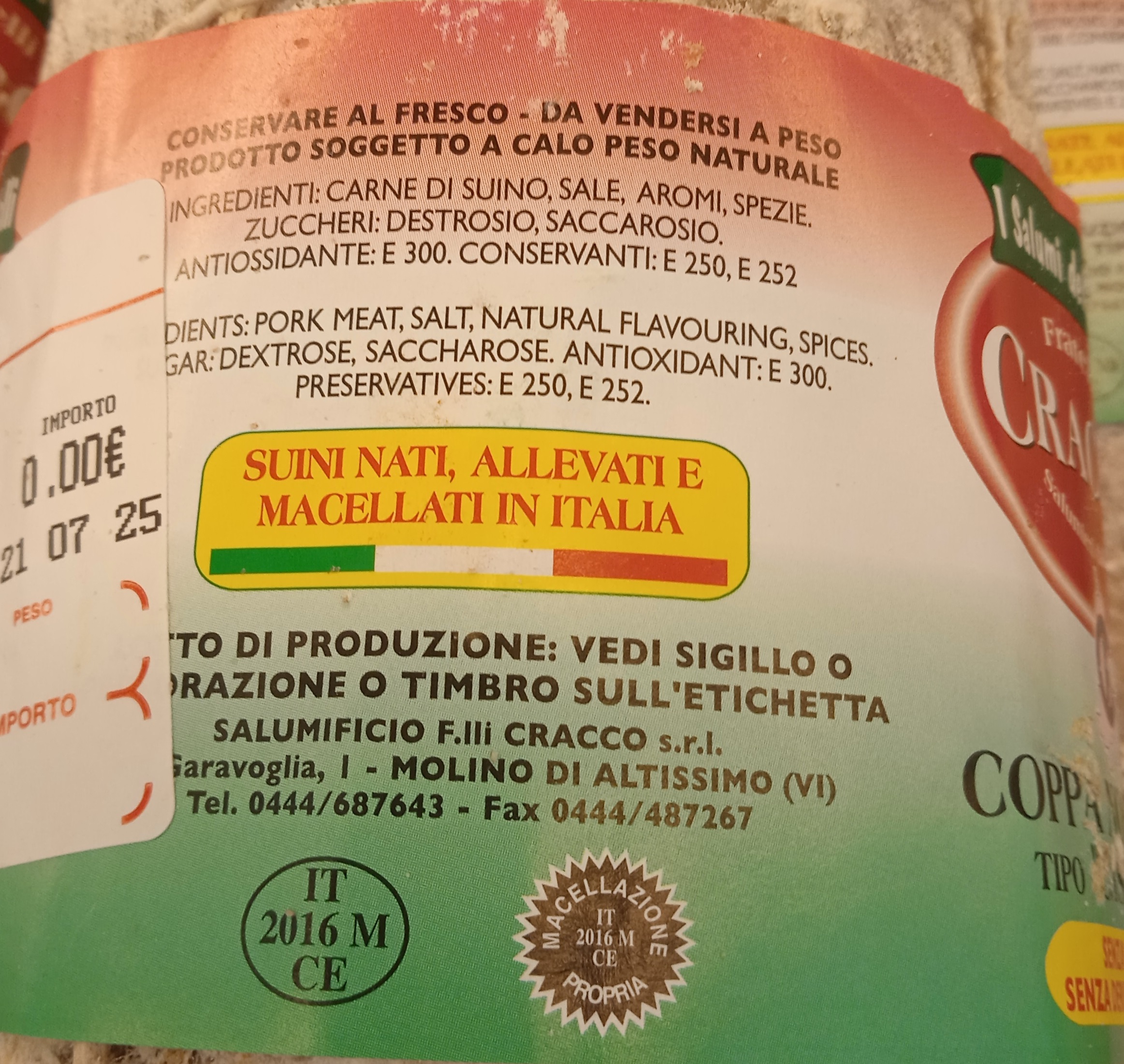 The Coppa must be cut into thin slices, it can be an excellent accompaniment to Pugliese or Tuscan bread. Excellent pairing with vegetables and vegetables such as arugula, and chicory Among the cheeses that best match in first place is Gorgonzola DOP.