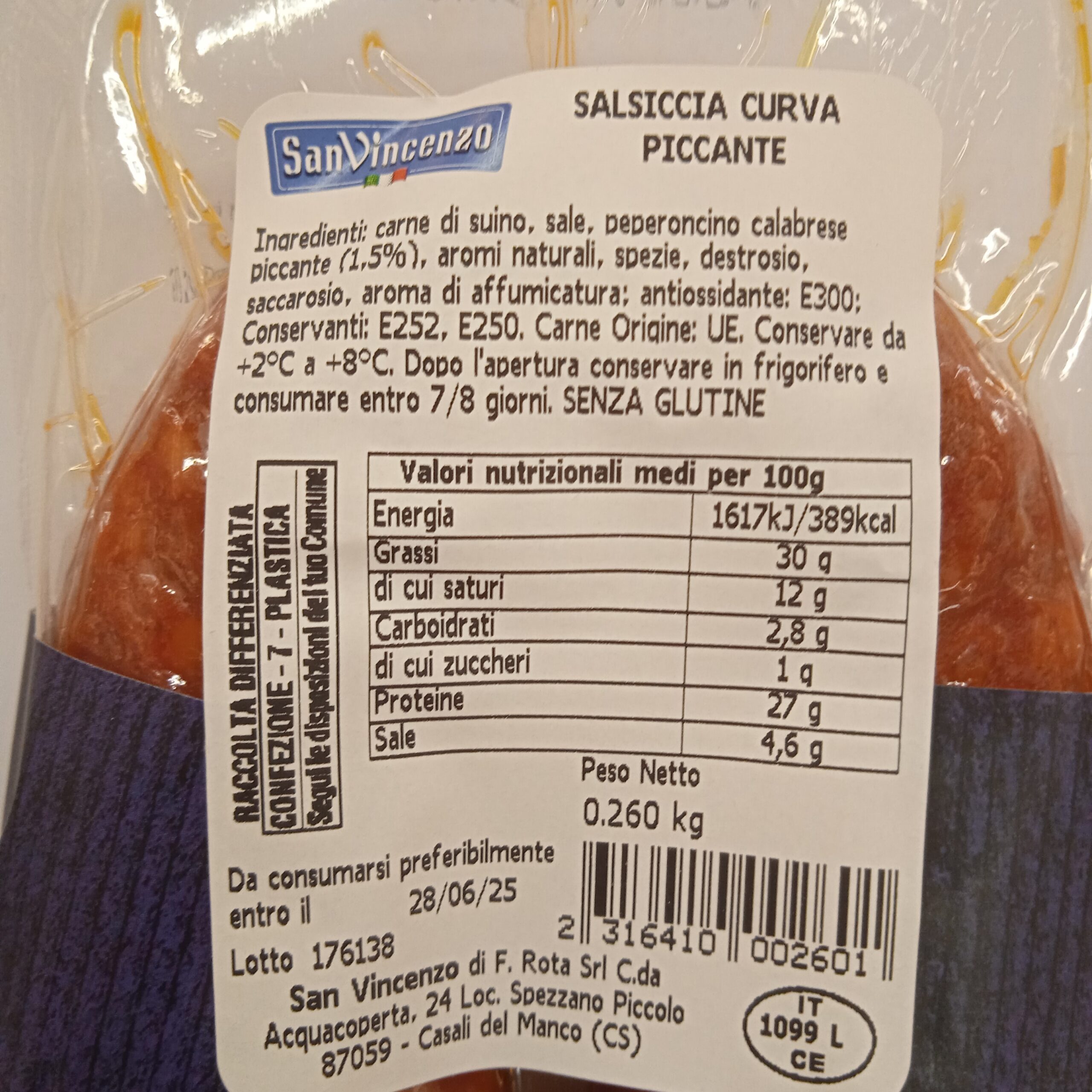 SALAMI SPICY SALSICCIA PICCANTE CALABRIA SALUMIFICIO SAN VINCENZO 0,25Kg c.a.