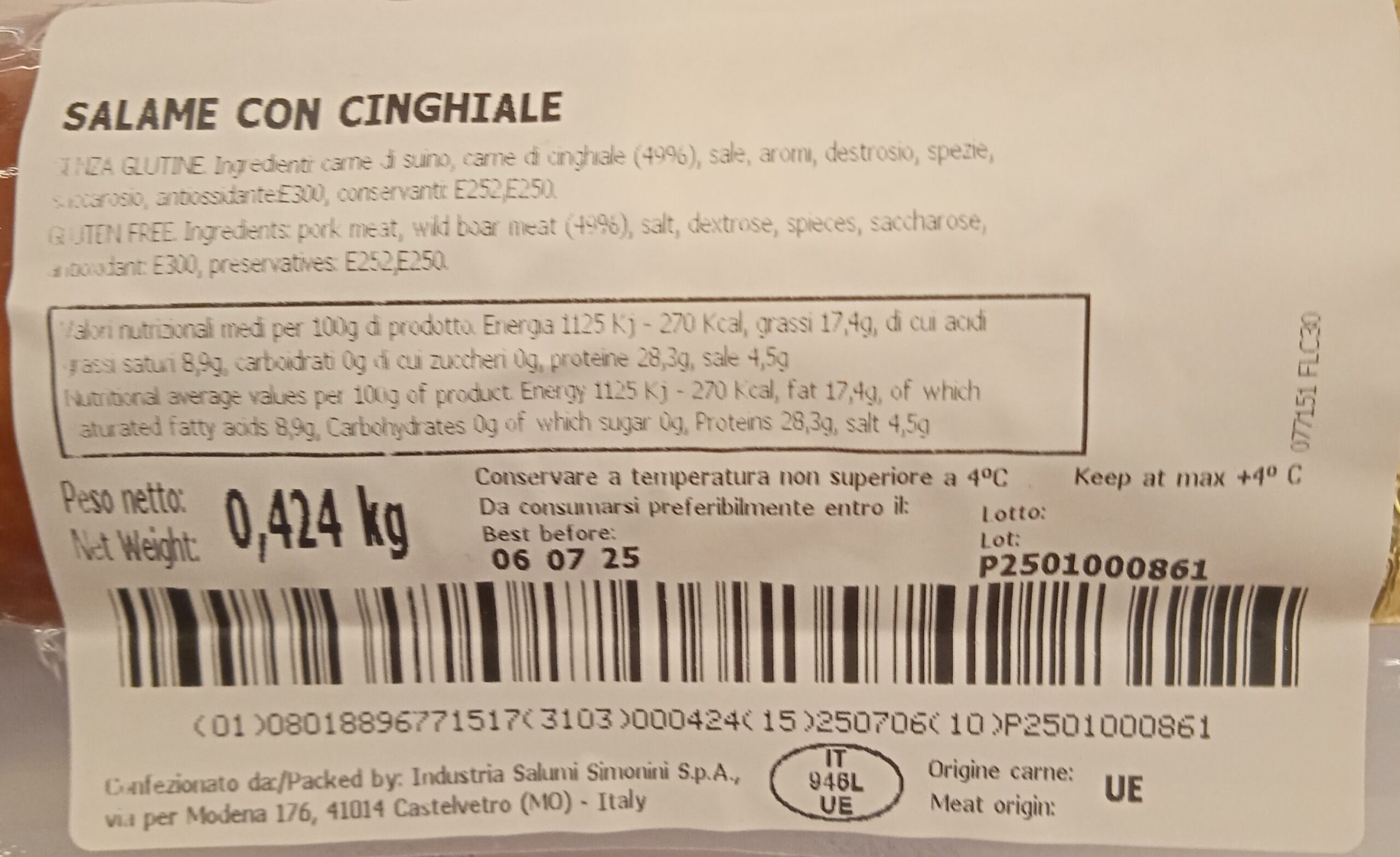 WILD BOAR SALAMI 400Gr c.a.